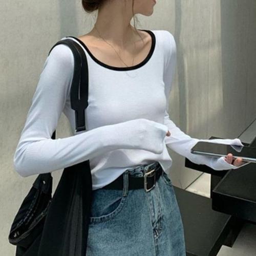 [엄지척]여대생 봄가을 청바지 배색 긴팔 라운드 검정 흰티_19613650_667501