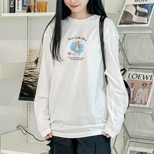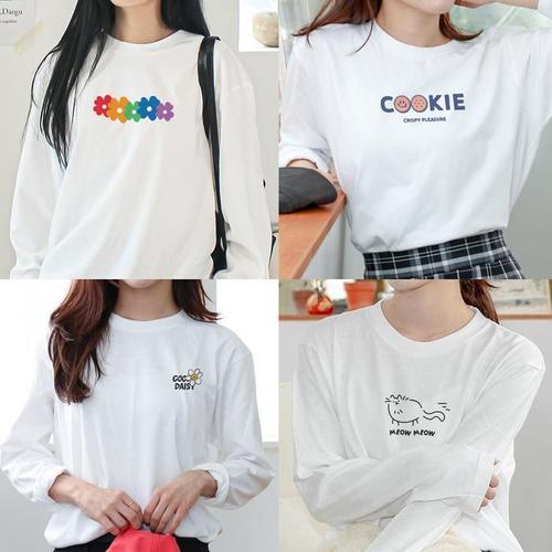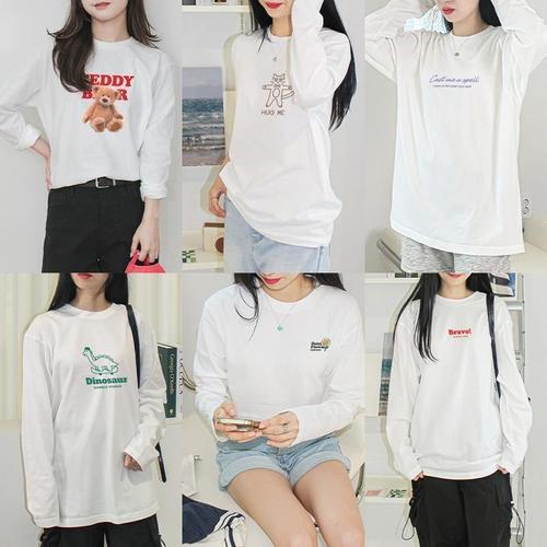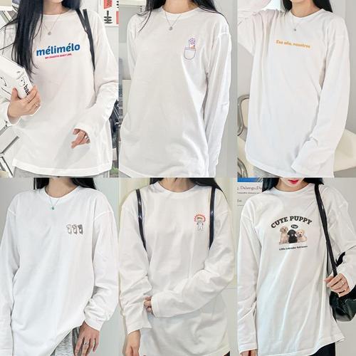 [셀러허브_여성트랜드패션]여성 캐주얼룩 긴팔 봄 사계절 루즈핏 흰티 라운드넥 티셔츠