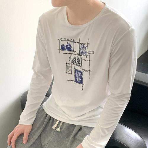 티셔츠 라운드넥 긴팔 남성 봄가을 면티 간절기 흰티 WFIOWCQ