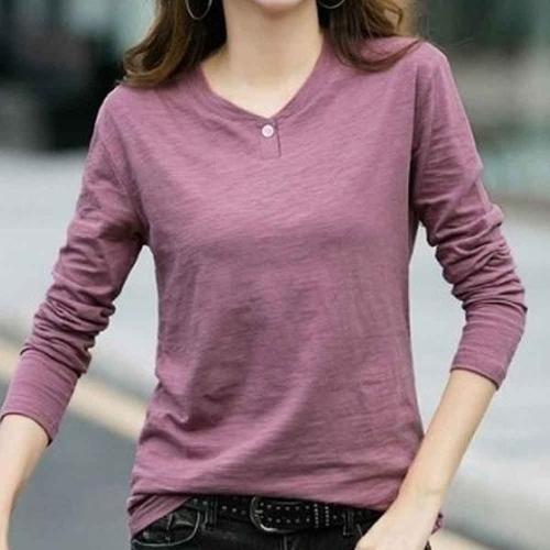 [신상오픈런]브이넥 무지긴팔티셔츠 패치 여성 기본핏 흰색티