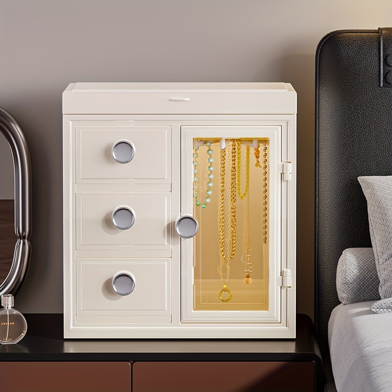 TEMU 투명 창이 있는 보석 보관 캐비닛, 3단 서랍이 있는 보석 상자, 보석 가방
