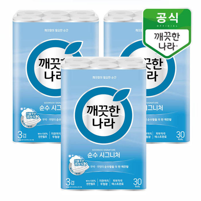 깨끗한나라 3겹화장지순수시그니처 30m30롤3팩