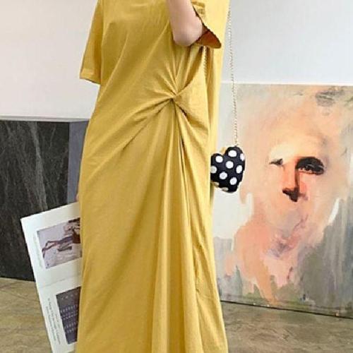 [에이치플러스몰]꼬임 반팔 데일리 롱원피스 루즈핏 클래식 여름 원피