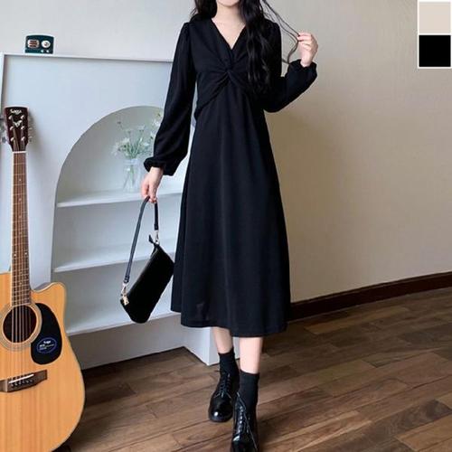 [에이치플러스몰]꼬임 ST230515 브이넥 롱 원피스