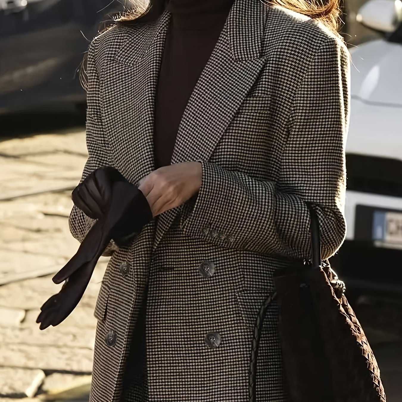 TEMU 우아한 여성용 영어 정장 (재킷만 해당, 바지 미포함) - 더블 브레스트 체크무늬 정장 재킷, 루즈핏 롱 코트, 구조적인 라펠, 세탁기 사용 가능, 사무실, 공식 행사 및 일상복에 적합 - 봄/가을/여름 C