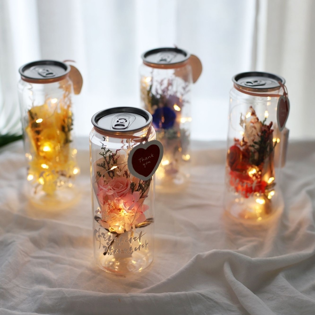 드라이플라워 프리저브드 플라워 미니 꽃다발 장미 로즈데이 투명 캔 꽃다발