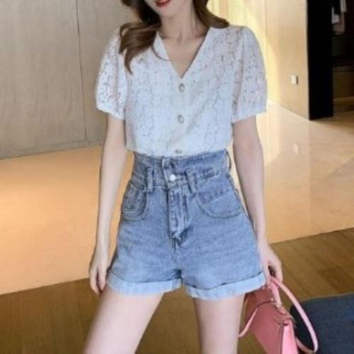 [다잇템]여성 일상용 꽃무늬 레이스 SS 블라우스