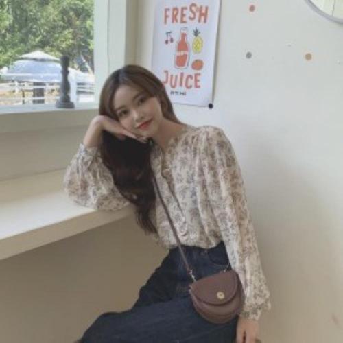 러블리 쉬폰 꽃무늬 블라우스 퍼프 긴팔 봄가을