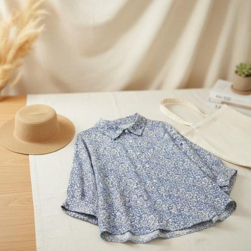 [다잇템]여자 내추럴 나들이 꽃무늬 블라우스