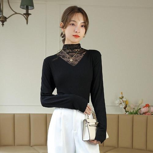 (스타일하우스) 블라우스 셔츠 브라우스 VNG 꽃무늬 레이스로 브이넥을 덮은 니트블라우스