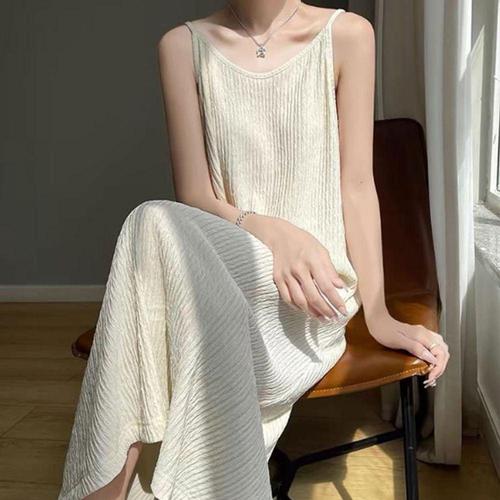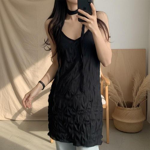 여성 플리츠 끈나시 롱원피스 1P 데일리 주름 치마 WFII5J4