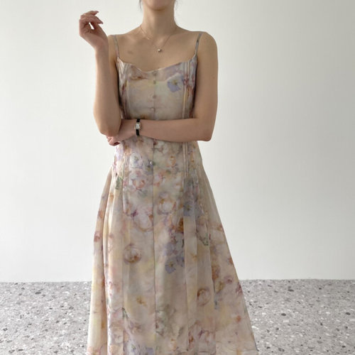 클루이가넷 / 블러썸 플라워 스트랩 끈나시 a라인 롱원피스 바캉스 휴양지룩 드레스