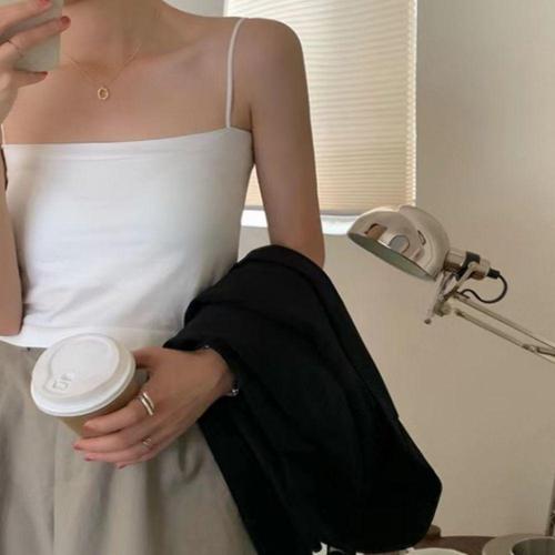 여성 2컬러 일자핏 둥근 끈나시 브라렛 무지 나시탑 WFKB3S8