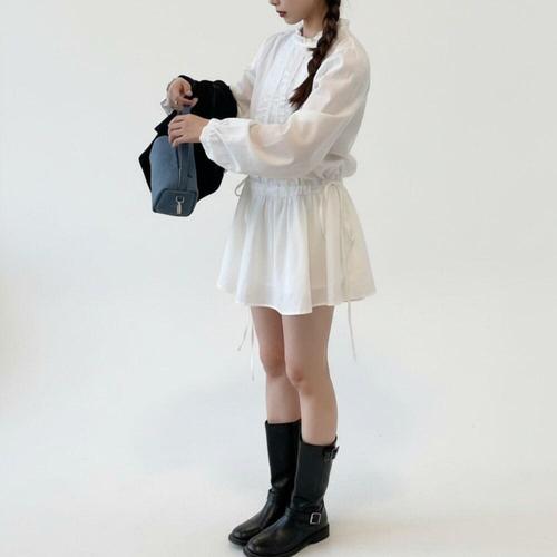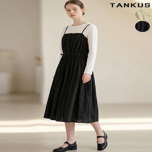 [탱커스]여성 사이드 리본끈 플레어 끈 원피스