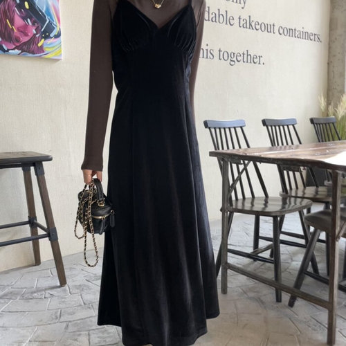 [에이치플러스몰]레이스 온나핏 롱니트 뷔스티에 끈나시 다데나