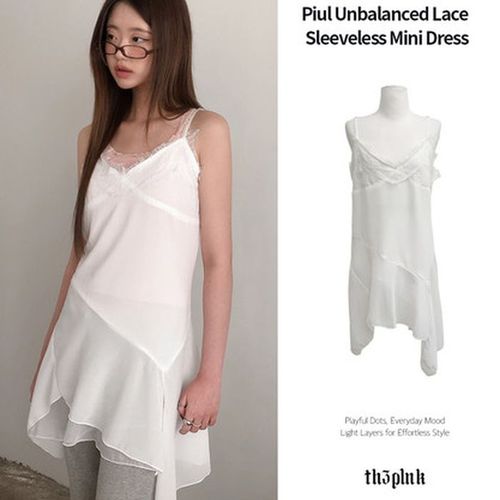더핑크 / 피울 언발 레이스 끈나시 미니원피스