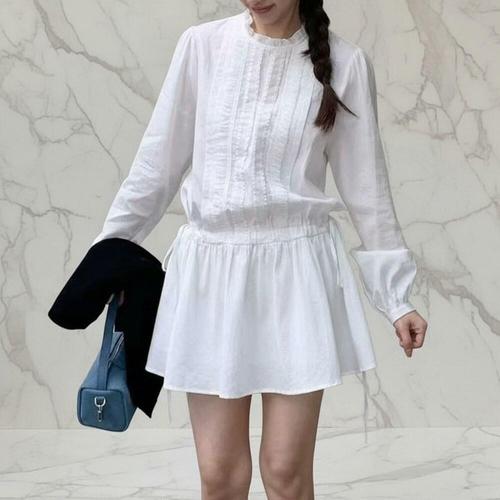 [미라클세븐]여성 레이스 프릴 끈 미니 드레스 코튼 원피스