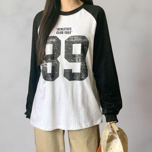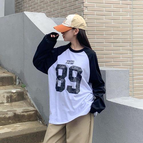 [옷자락] 여자 캐주얼 레터링 레글런 나그랑 루즈핏 맨투맨