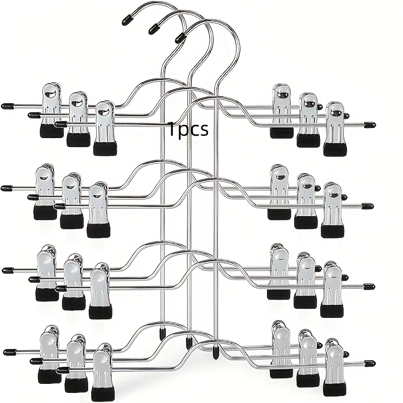 TEMU 공간절약형 조절 가능 클립 바지걸이, 4단 금속 선반 - 캐주얼 팬츠, 반바지, 청바지 및 수건용