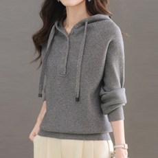 나바바 NK3210 여성 소프트 버튼 포인트 긴팔 후드 니트티
