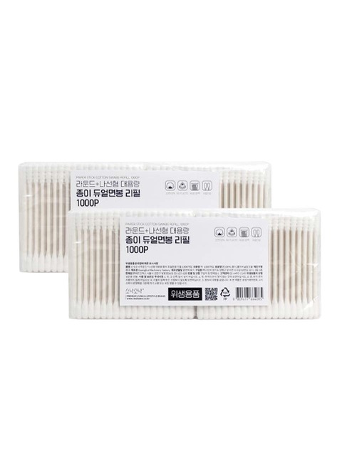 [소낙소낙] 라운드 나선형 대용량 종이 듀얼면봉 리필 1000P X 2세트