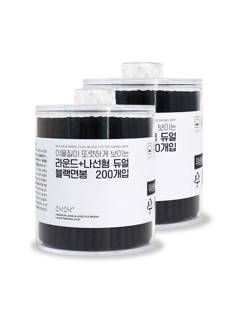 [소낙소낙] 이물질을 확인하기 쉬운 라운드 나선형 듀얼 블랙면봉 200개입 X 2세트