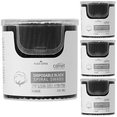 코멧 일회용 검정 나선형 면봉, 200개입, 4개