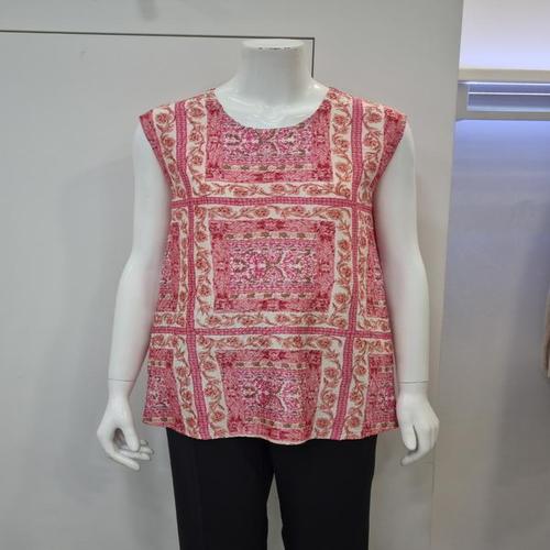 [벨리시앙]벨리시앙 세이브존01 패턴 플리츠 슬리브리스 블라우스(2color) BL420 (33268366)