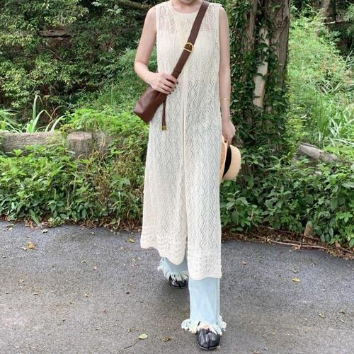 그물 레이어드 나시 민소매 망사 니트 여성 여름 나시티 OFS-KNV9