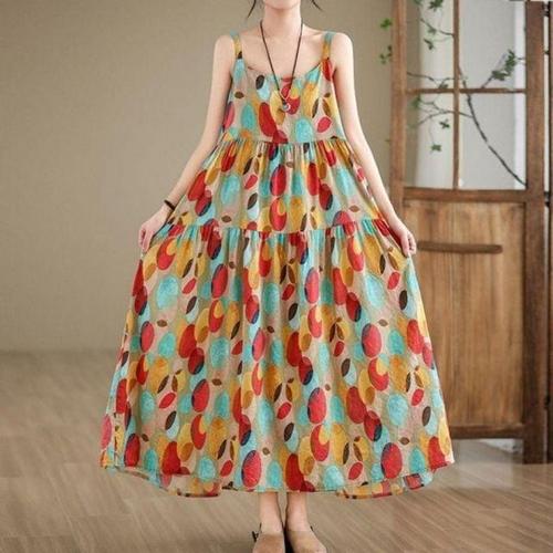 여름 끈나시 나염원피스 나염 휴가 바캉스 빅사 WFLMSJO