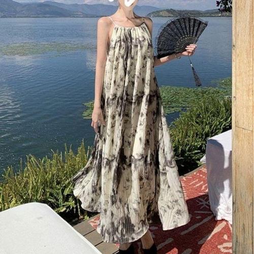 이쁘다요 끈 나염 원피스 주름 나시 WFLMPIY
