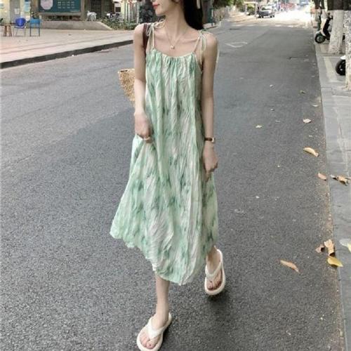 이쁘다요 캐주얼 주름 원피스 나염 나시 여성 끈 WFLMPHV