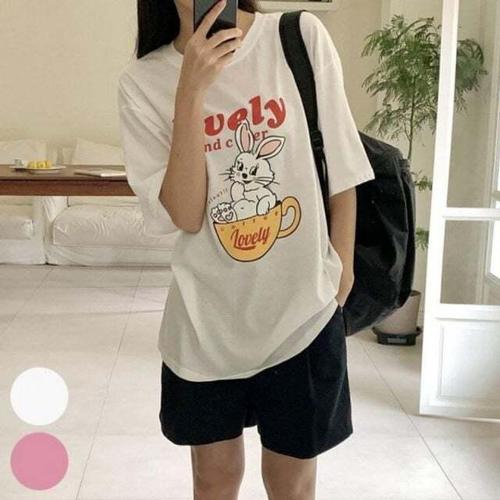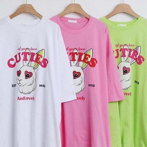 [셀럽하우스]반팔티 EVBI2194 의류 306P507S 토끼 빅사이즈 나염 박시