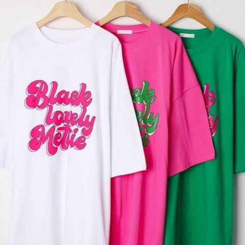 [셀럽하우스]나염 HPIQ0501 레터링 20수 빅사이즈 반팔티 빅사이즈미시옷 의