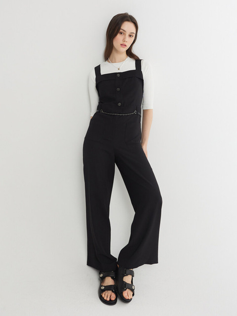 [신상오픈런]여성 라벨 두 포켓 멜빵 일자 와이드핏 가을 점프수트 (41993101)