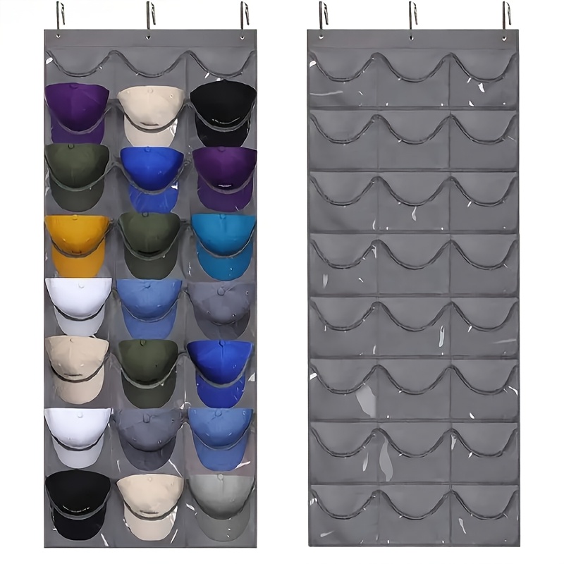 TEMU 이산반르브 1팩 문뒤용 야구모자 정리대, 24개 투명 포켓, 벽걸이 모자 보관대, 블랙/그레이