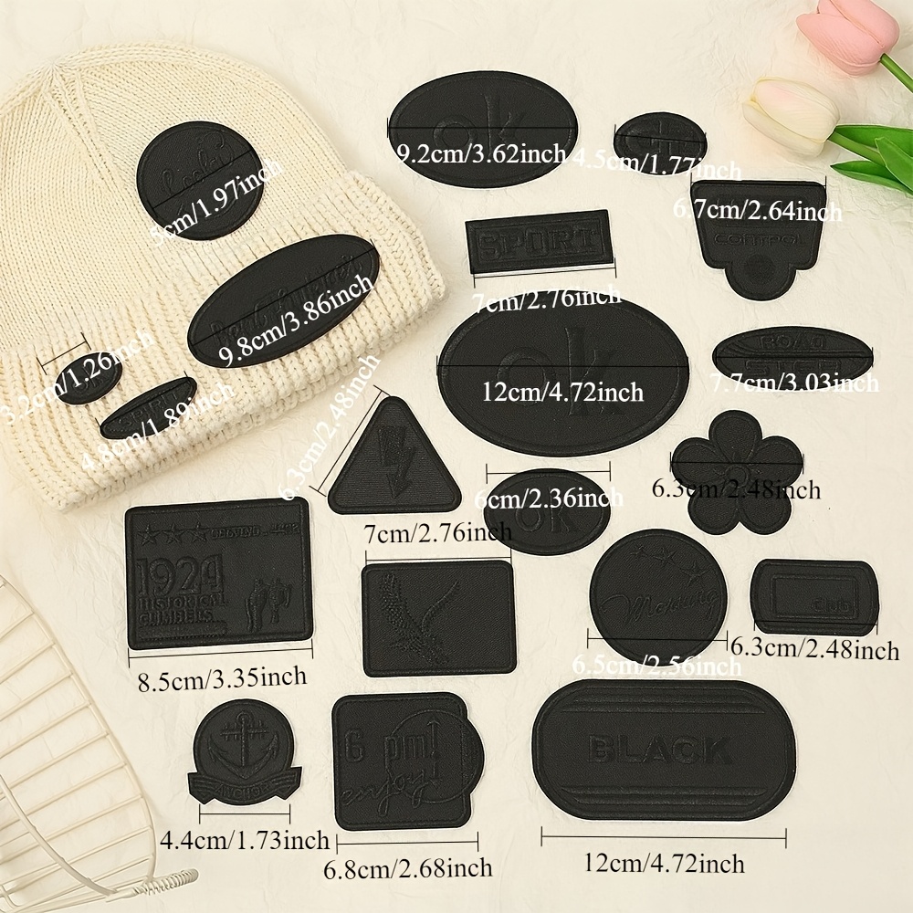 TEMU 신상 다운 재킷 패치 20개, 블랙 레터 자수 천 패치, 의류 및 재킷 수리용 자체 접착 패브릭 패치, 심리스 패브릭 수리 패치, 정교한 디자인, 재킷, 의류, 액세서리용 - 간편한 부착, 재봉용품 액세서리