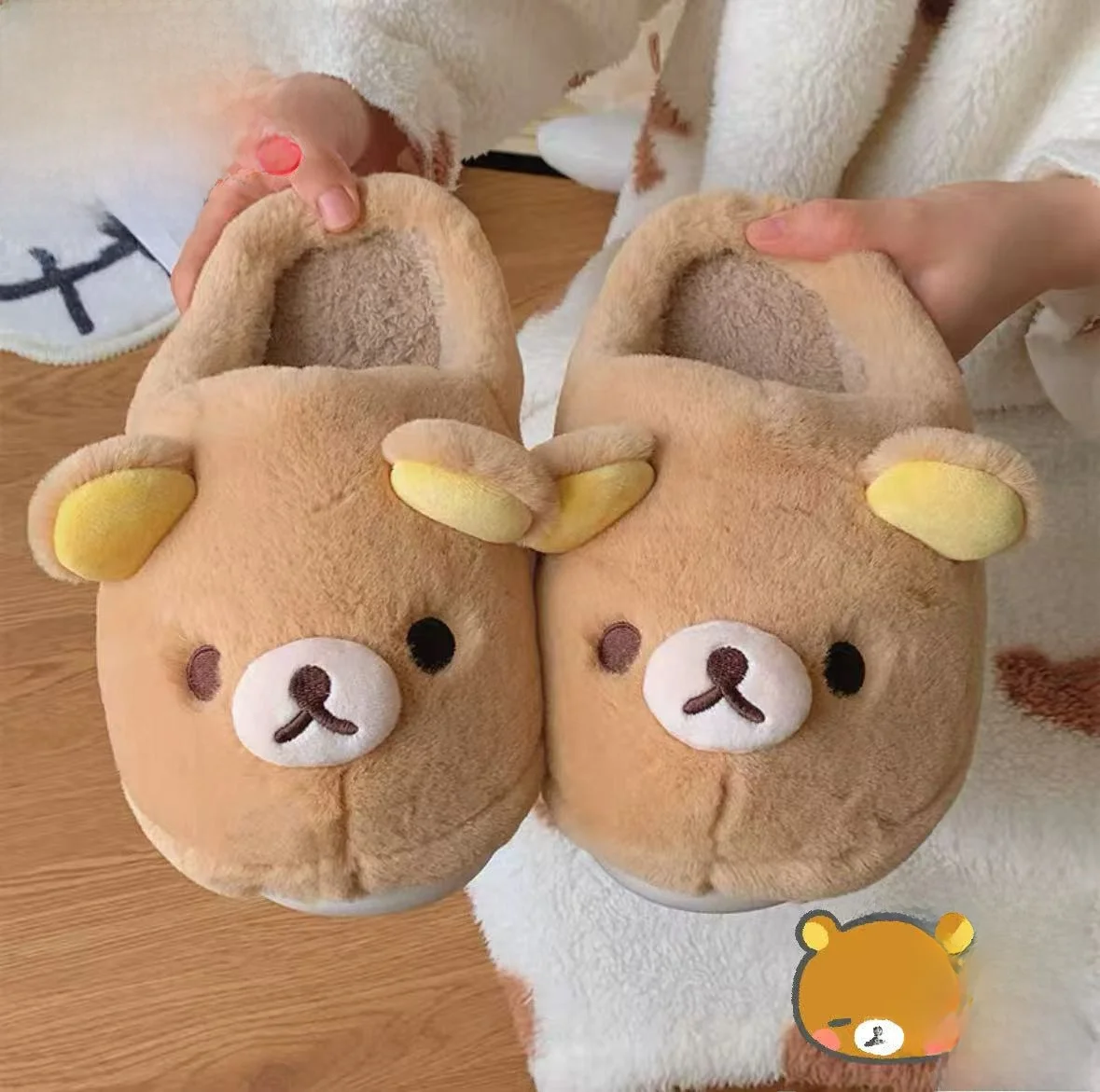 귀여운 곰돌이 코튼 슬리퍼 여성용 겨울 야외용 커플용 미끄럼 방지 홈 따뜻한 면 슬리퍼 플러시 갑피 PVC 밑창