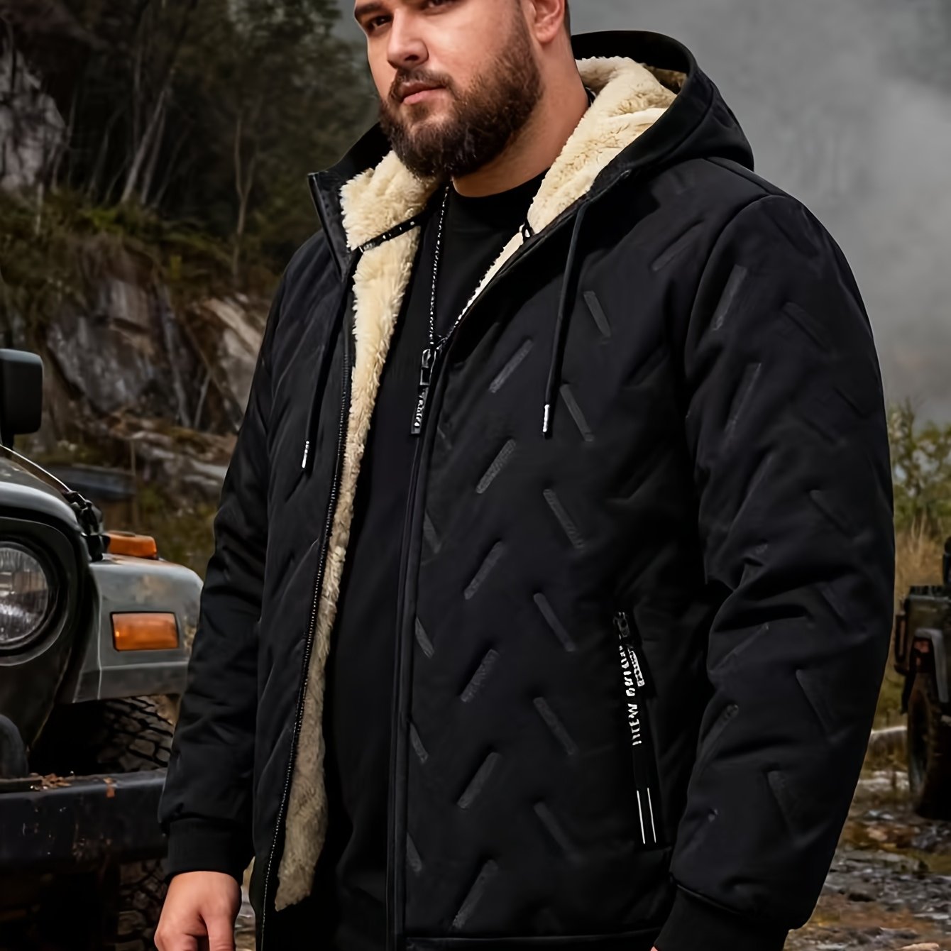 TEMU 플러스 사이즈 남성용 후드 재킷 (겨울용), 따뜻하고 편안함을 위해 디자인, 야외 캐주얼 웨어에 적합, 플러스 사이즈