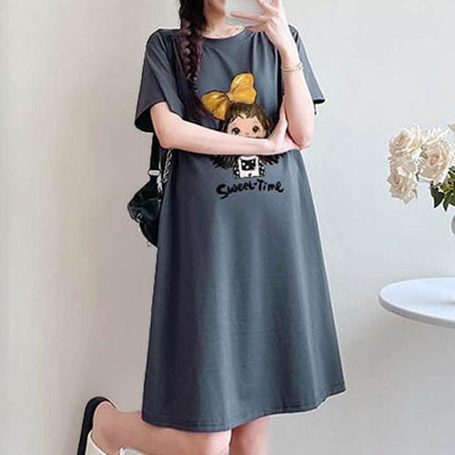 넉넉한 핏 캐주얼한 일상복 미디 원피스 홈웨어 잠옷