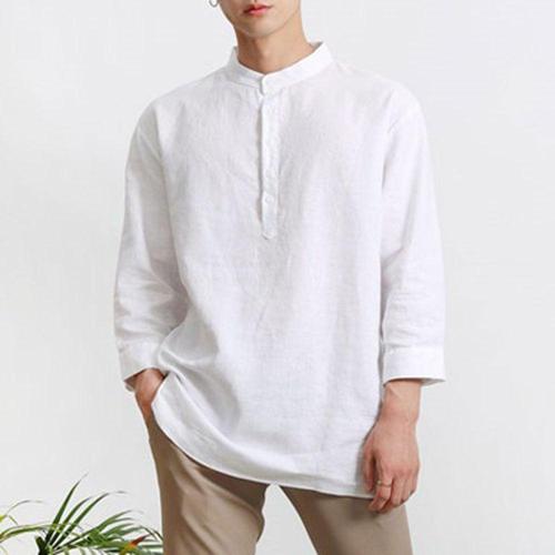 베이직 린넨 빅사이즈 헨리넥 남방 남자셔츠 7부소매 WEED4F1