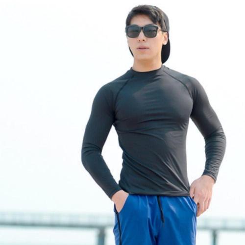 남자 래쉬가드 상의 블랙 몸매 가슴 커버 남성 수영복