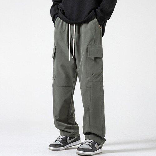 TEMU 남성용 패션 카고 팬츠, 캐주얼 루즈핏, 단색, 탄성 허리, 멀티 포켓, 폴리에스터 100%, 비스트레치 원단, 레귤러 길이, 미드 웨이스트, 봄/가을 주말 캐주얼 웨어용
