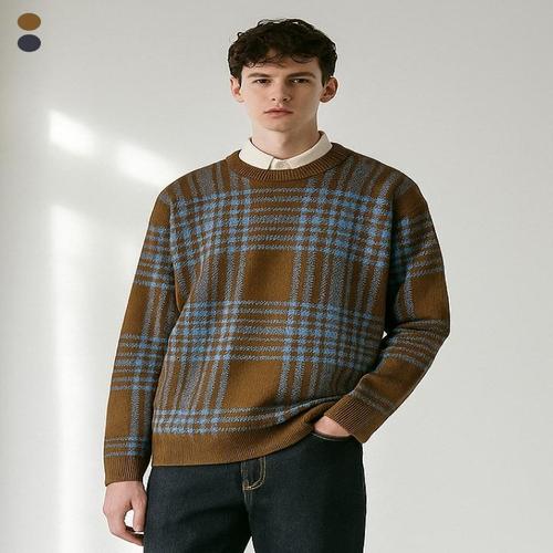 [닉스][NIX]남) A100 체크 반가다 세미오버핏 스웨터(7GG) (FNPWCWR105P)