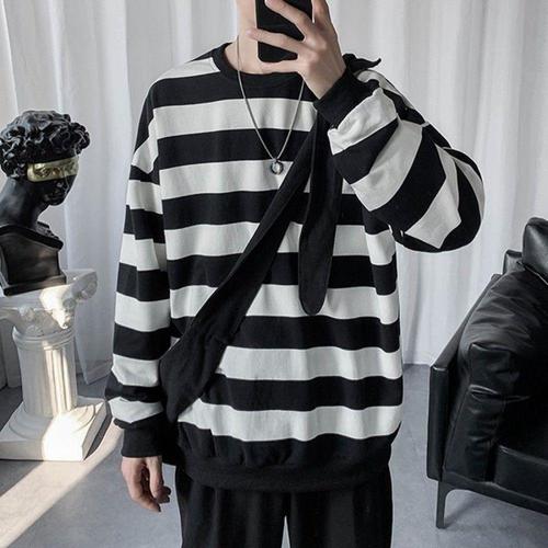 스웨트 스웨터 스?셔츠 오버핏 라운드넥 맨투맨 봄 가을 남자 남성 봄/가을 슬림핏 스트라이프 니트 트렌