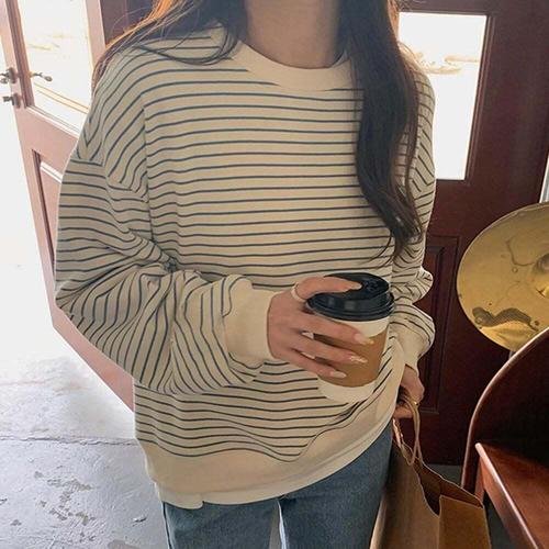 [셀럽하우스]베이직 TRFD6295 스트라이프 맨투맨