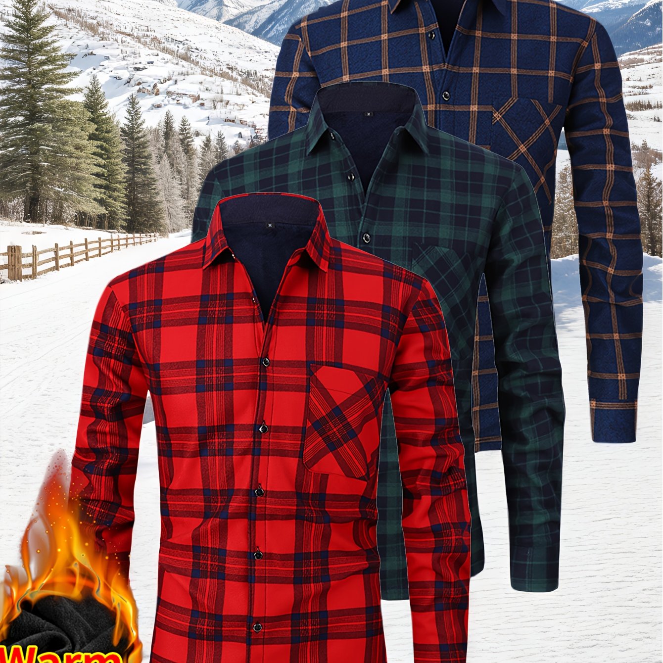 TEMU 남성용 겨울 체크 셔츠 2025 | 브러시 플리스 안감 헤비웨이트, 아웃도어 컴포트 추운 날씨 필수템, 초극세사 플리스 내부, 캐주얼 스타일 라펠 칼라, 가을/겨울용 긴소매 셔츠, 발렌타인데이 선물