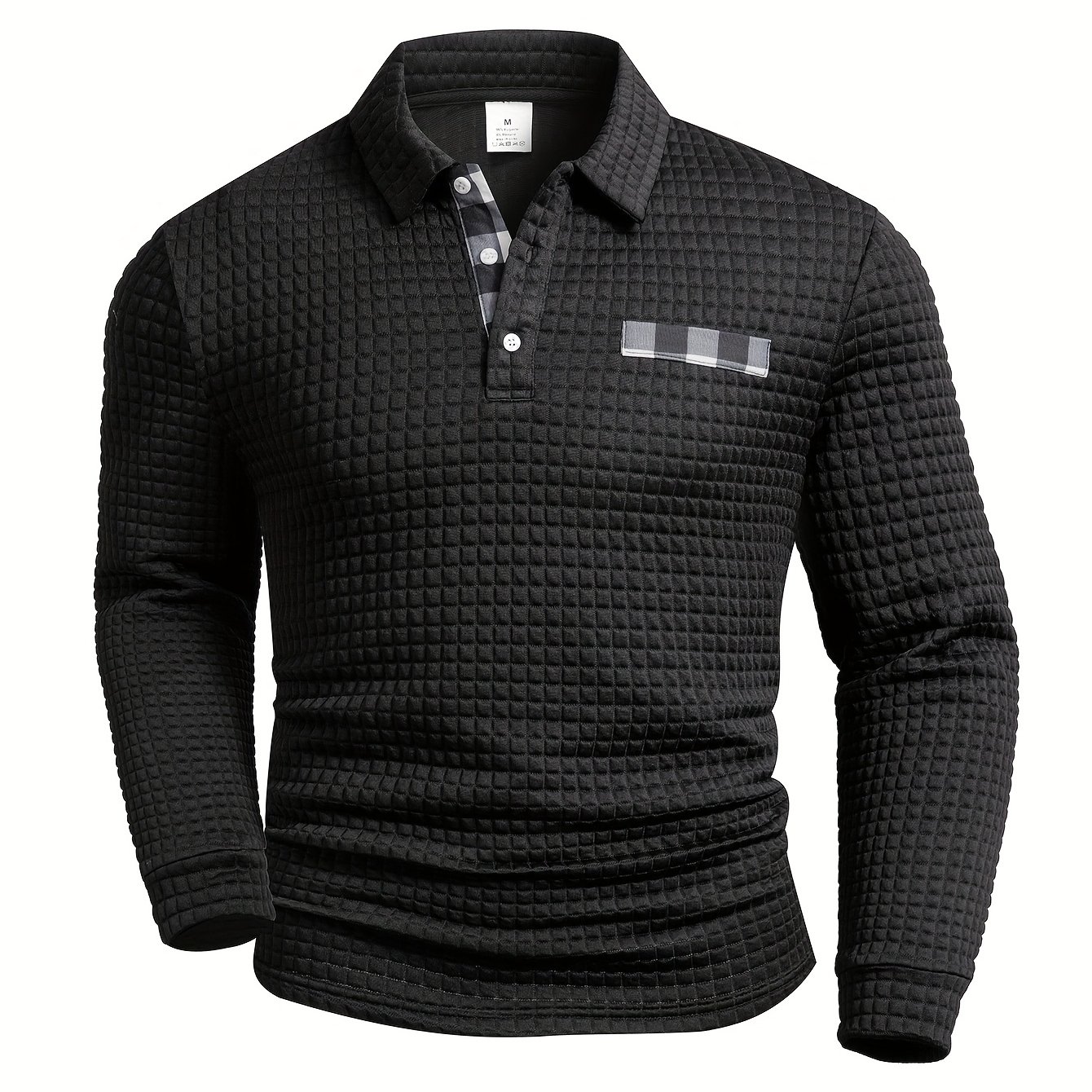 TEMU 디지털 프린팅 랜덤 체크 패턴, 무방향 체크 디자인, 두꺼운 스타일 긴팔 라펠 탑, 스퀘어 그리드 텍스처 원단, 데일리 캐주얼 웨어 패션