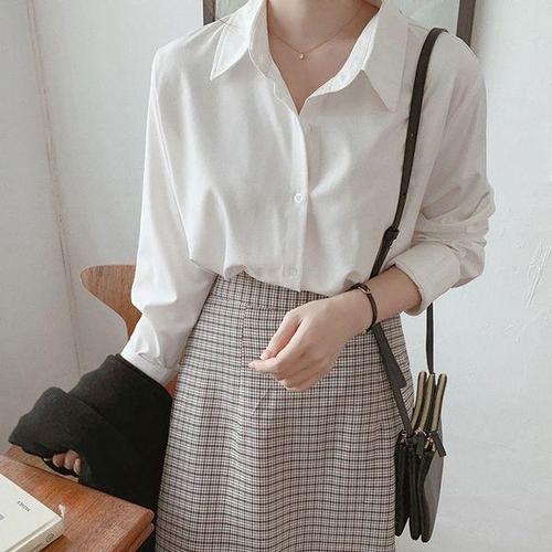 [에이치플러스몰]베이직 정장 슬랙스 셔츠 카라 블라우스 출근룩 2컬러