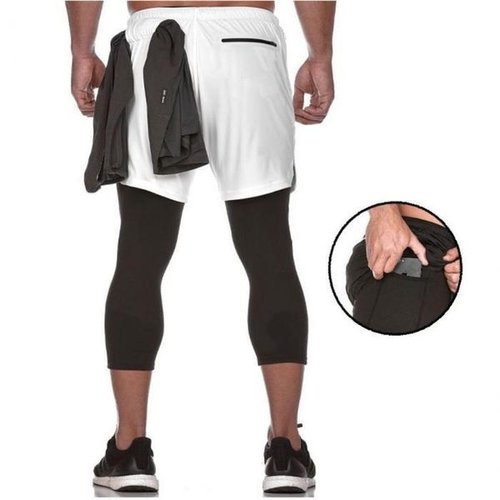 LN보호타이즈 속건 통기성 이중 수영복 트렁크 2in1 레깅스 수영복 헬스 운동복 자전거 남성 여름 반바지